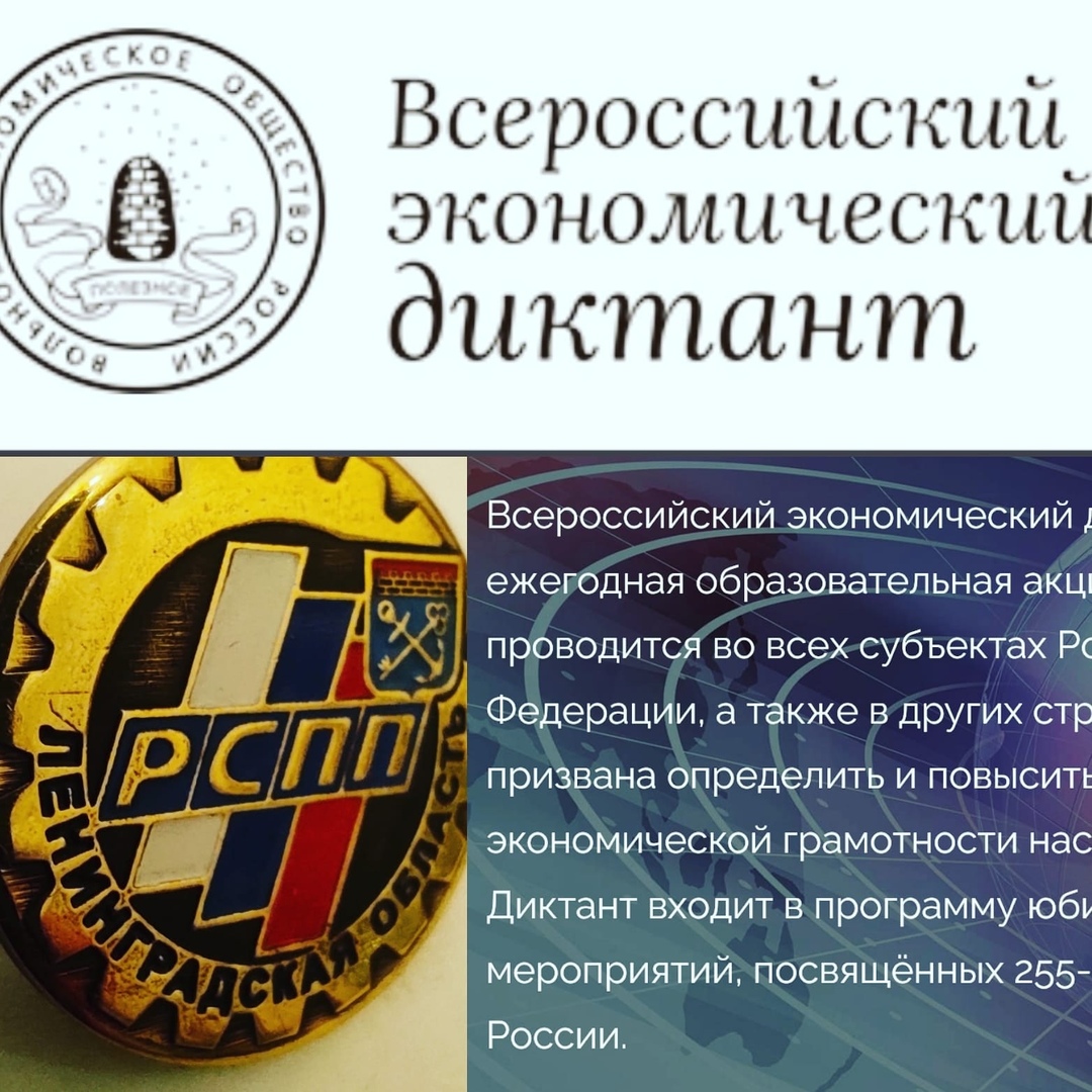 Региональное объединение работодателей "Союз промышленников и предпринимателей Ленинградской области" совместно с Общероссийской общественной организацией «Вольное экономическое общество России» провели в Ленинградской области Общероссийскую образовательную акцию «Всероссийский экономический диктант».