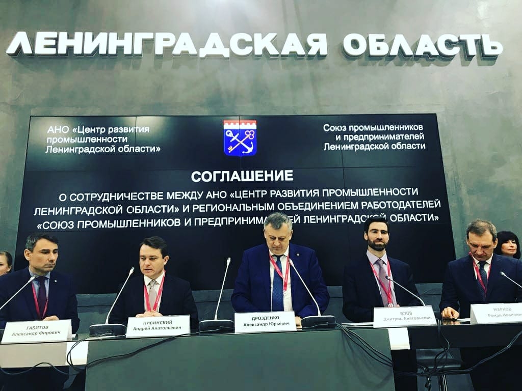 15 февраля в рамках инвестиционного форума в г. Сочи при участии Губернатора региона Александра Дрозденко было подписано соглашение о сотрудничестве между Союзом промышленников и предпринимателей Ленинградской области и правительственным Центром развития промышленности.