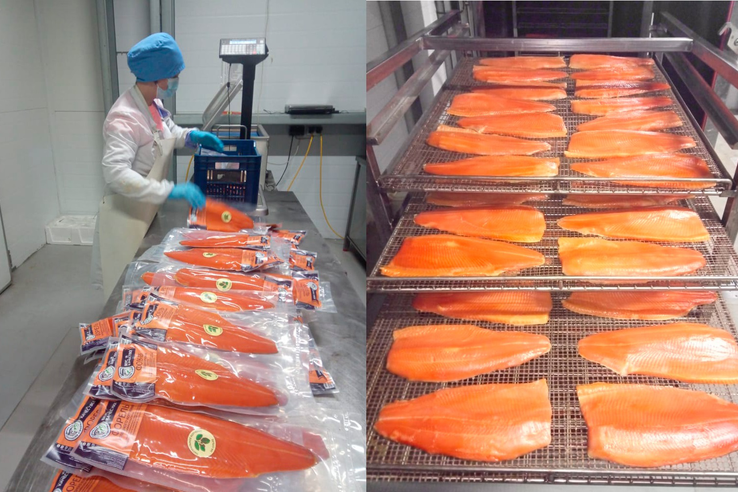 Для кормления используются только сертифицированные корма финских компаний Raisio и BioMar. Производственный цех переработки находится в непосредственной близости от садков — всего в 500 метрах, что гарантирует свежесть сырья: от вылова до упаковки готового продукта проходит не более 18 часов.
