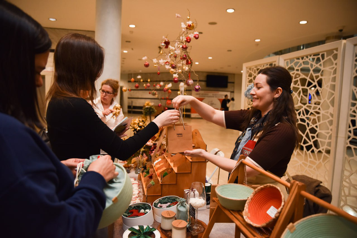 Слёт ремесленников открылся выставкой-ярмаркой «Создано в Ленинградской области», на которой участникам и гостям представили лучшие товары мастеров региона — от имбирных пряников к Новому году и украшений до изделий из керамики и авторских брошей.